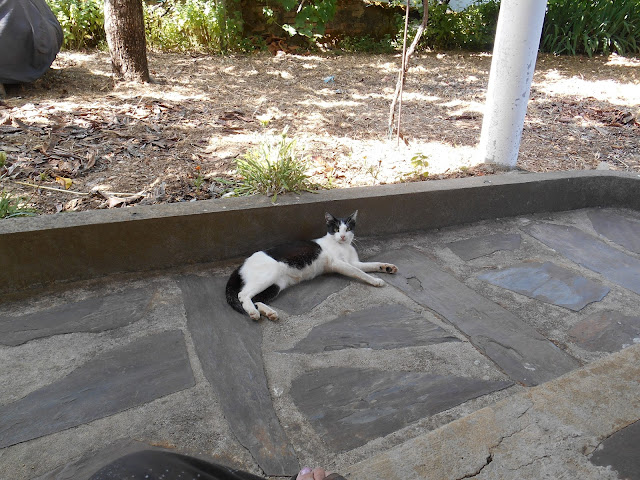 Desde que frequentamos com mais assiduidade a casa da aldeia, tem sido divertido ver a quantidade de gatos que por lá passam, havendo sempre um ou outro que se torna freguês permanente, enquanto lá estamos. Uns são das vizinhas, outros não têm dono e têm de fazer pela vida, mas todos sabem a hora do nosso almoço e ficam à espera do que sobra dos grelhados habituais.