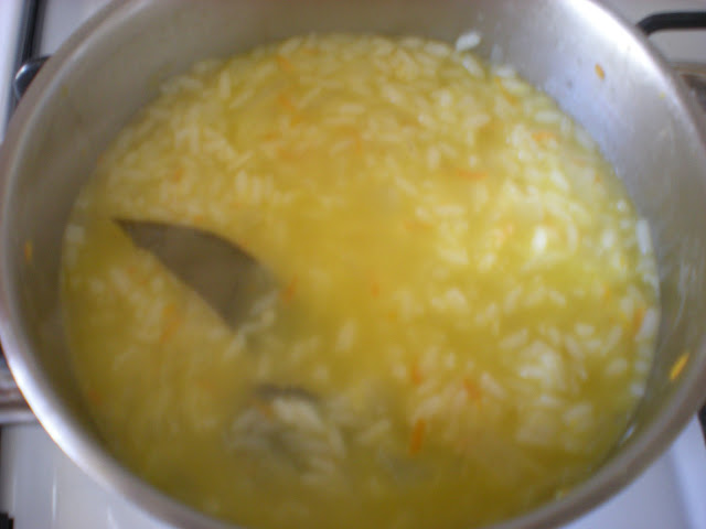 A receita que vos trago hoje, não tem nada de luxo. Tinham-me sobrado uns bons lombinhos da cabeça de Garoupa de uma refeição anterior, de Peixe Cozido. Como cá no Meu Estaminé não se pode desperdiçar nada, juntei-lhes uma dúzia de camarões e saíu um óptimo Arroz de Peixe e Camarão.