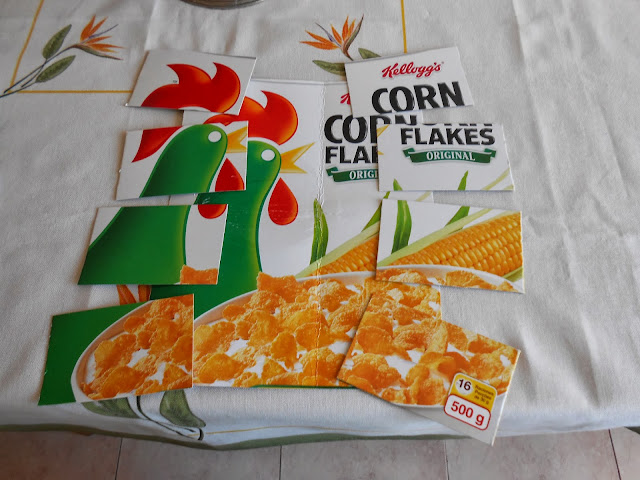 Hoje proponho-vos construir um Puzle a partir de 2 caixas vazias de cereais de pequeno almoço.